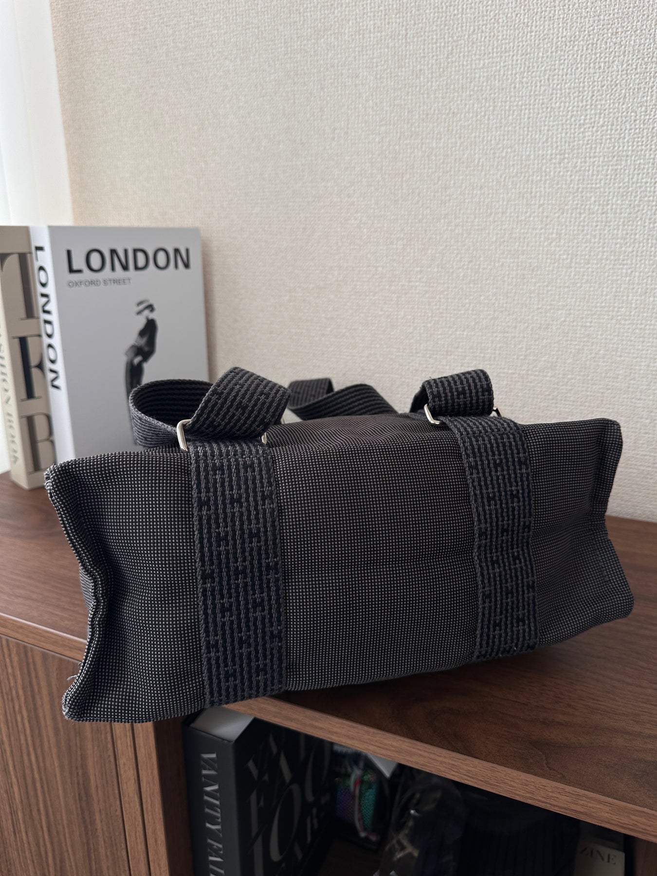 實用又百搭的 Hermès 復古經典帆布後背 Tote — 採用輕盈卻耐用的帆布製作,日常或旅行都非常合適。極簡設計搭配標誌性織帶,低調又優雅。