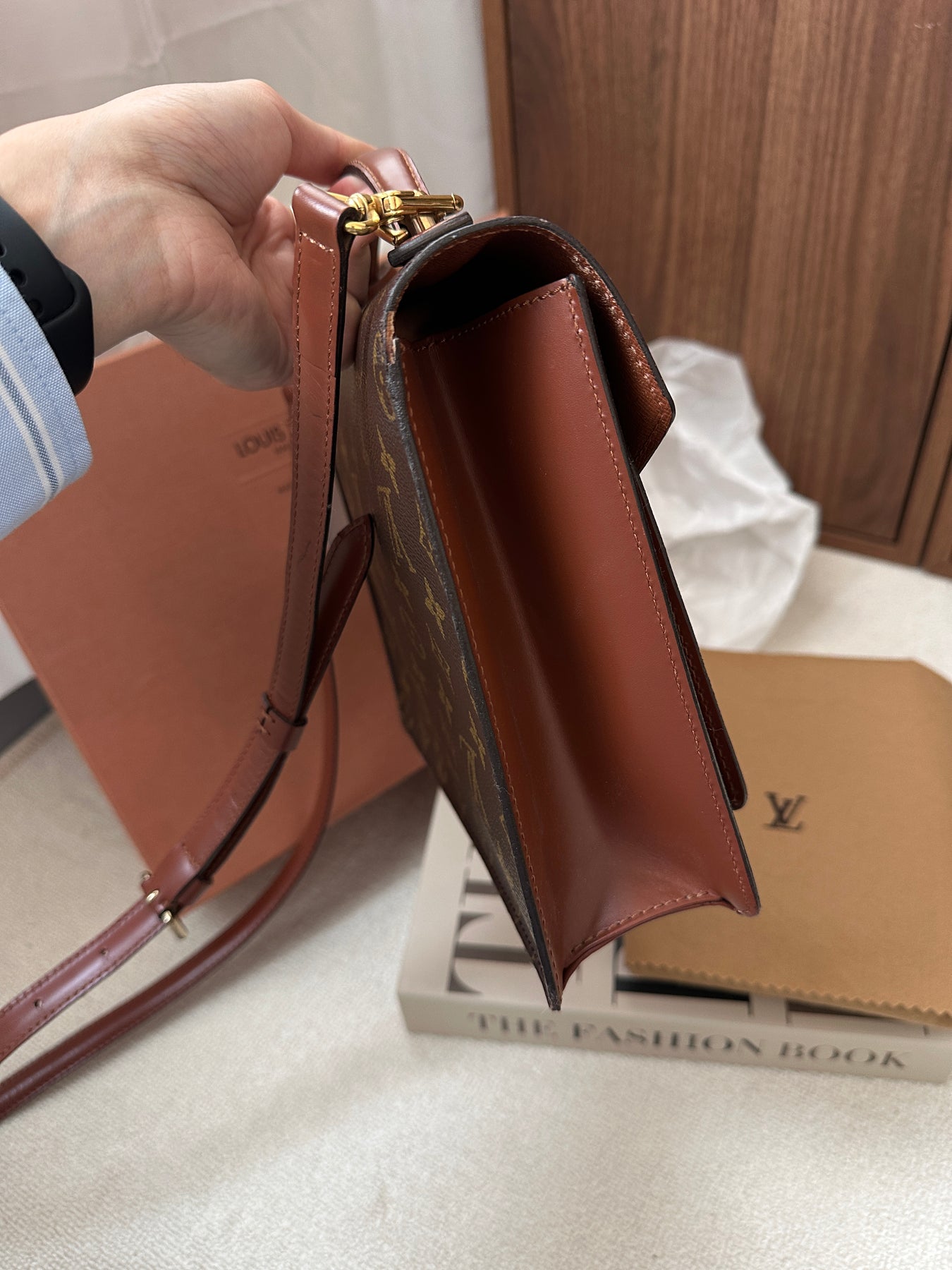 難得一見的 Louis Vuitton 復古珍藏 — 採用經典 Monogram 老花製作,耐用而優雅。重點是其硬挺的郵差包設計,加上經典 LV S-lock 金扣,兼具功能性與高級感。
