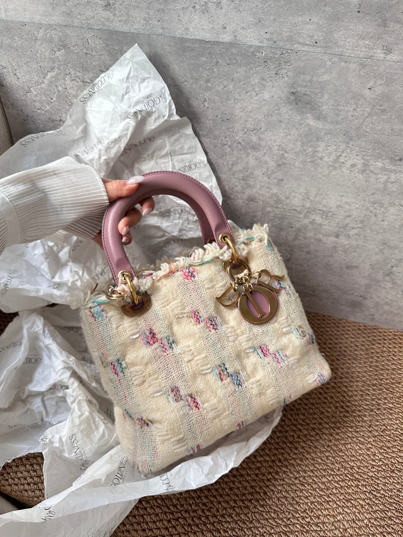 Dior Lady Dior 粉紫手柄粗花呢手提包 🌸|獨特色織紋與優雅魅力