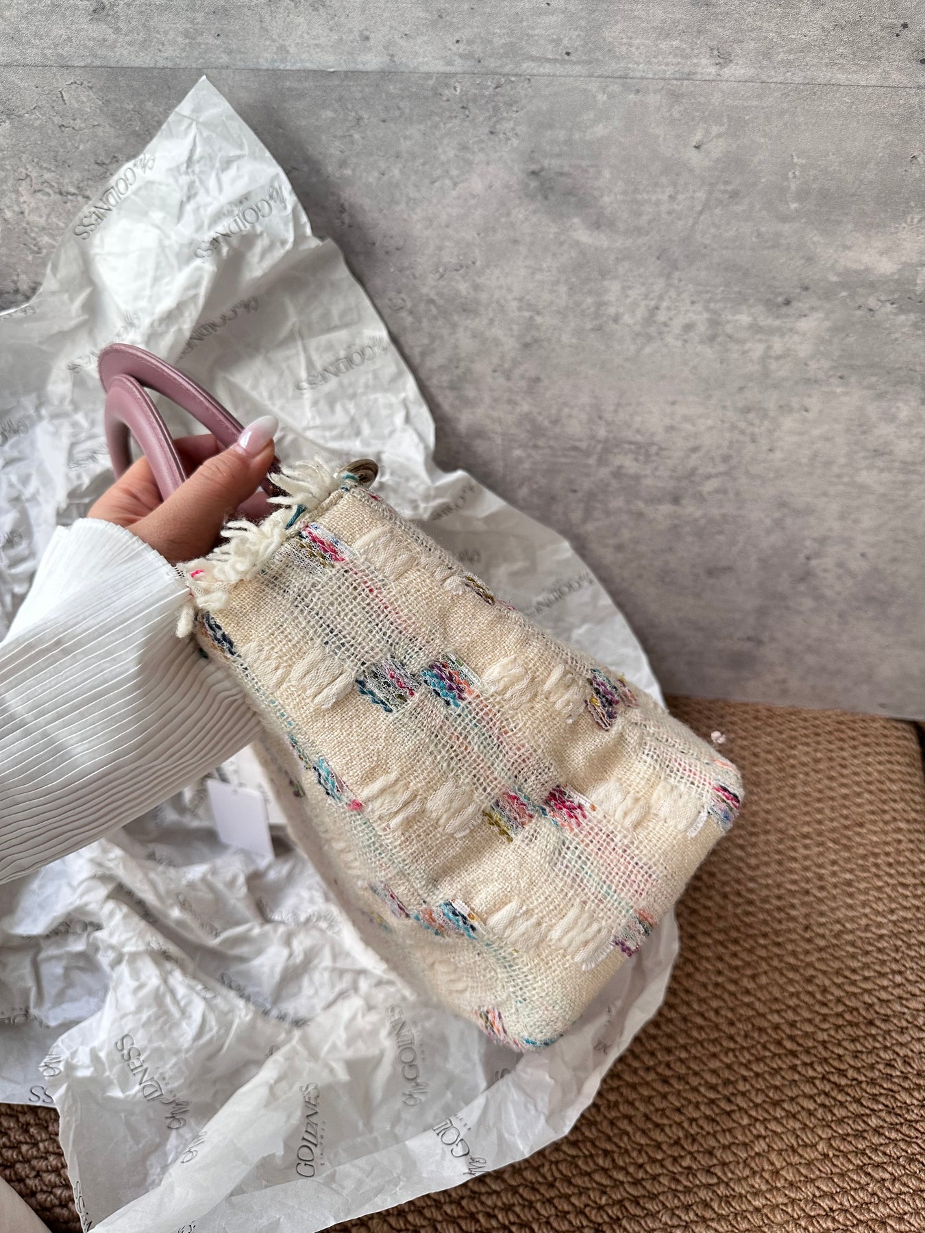 ・編織粗花呢設計,加入淡雅馬卡龍色線條
