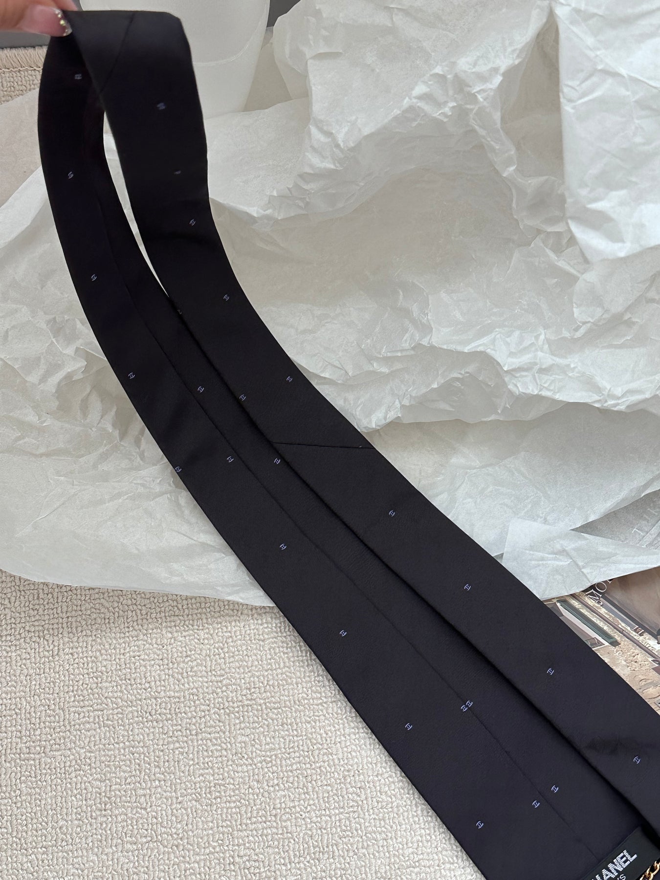 "A tie that whispers CHANEL elegance — the subtle CC monogram and fine details make it timeless and genderless."