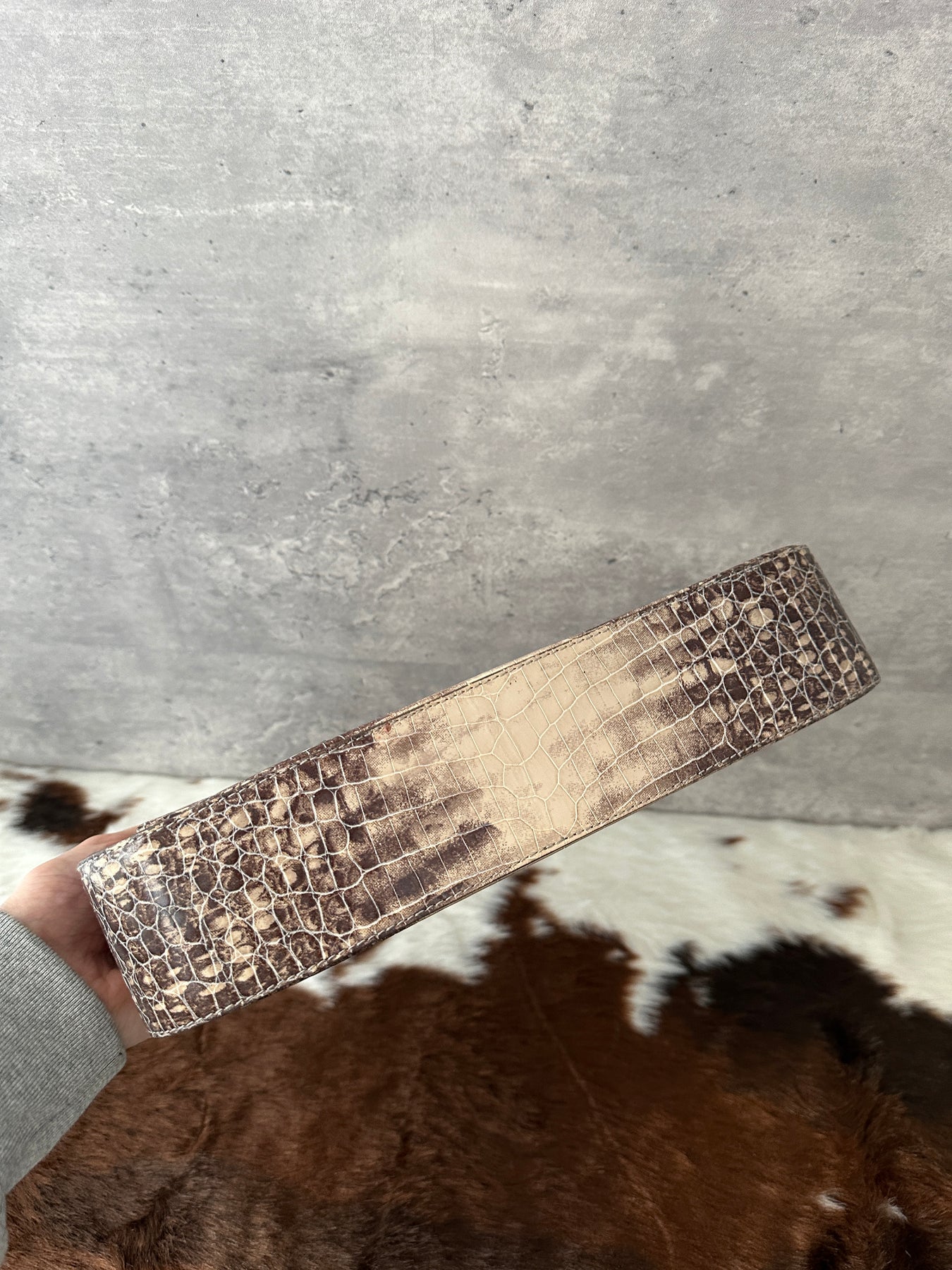 A striking Ferragamo hobo featuring a rare croc-embossed leather pattern in a beautiful gradient brown tone.