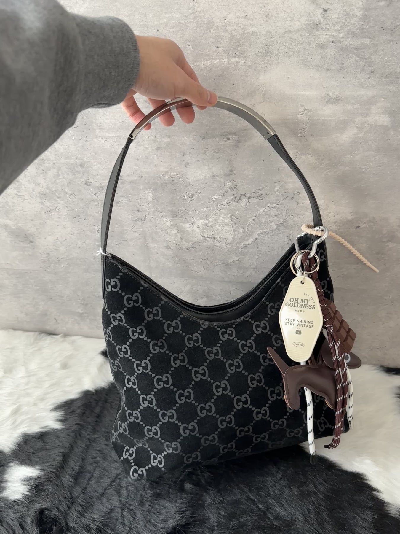 One of the most requested Gucci styles—So Black monogram in suede, highly practical and exceptionally wearable.