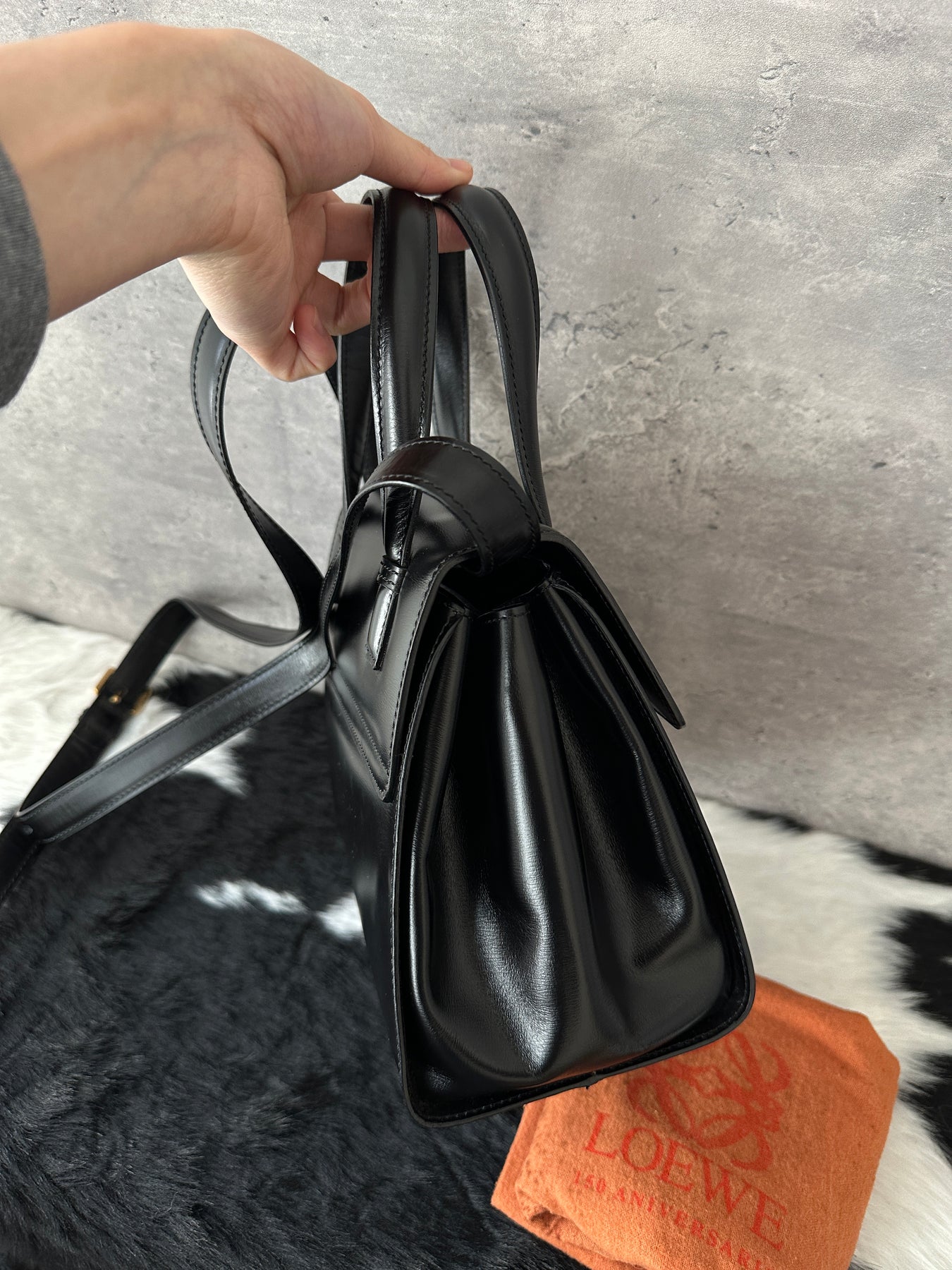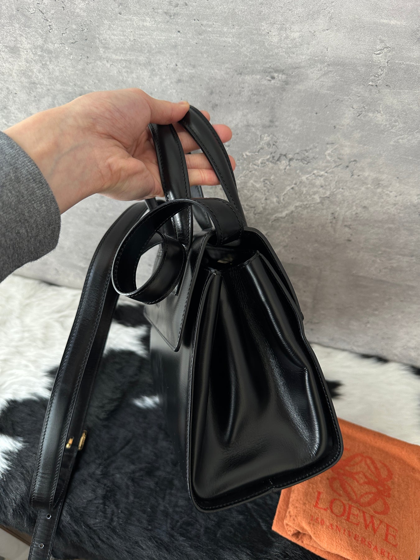 A rare all-black Loewe Kelly—minimal, timeless, and incredibly versatile for everyday elegance.