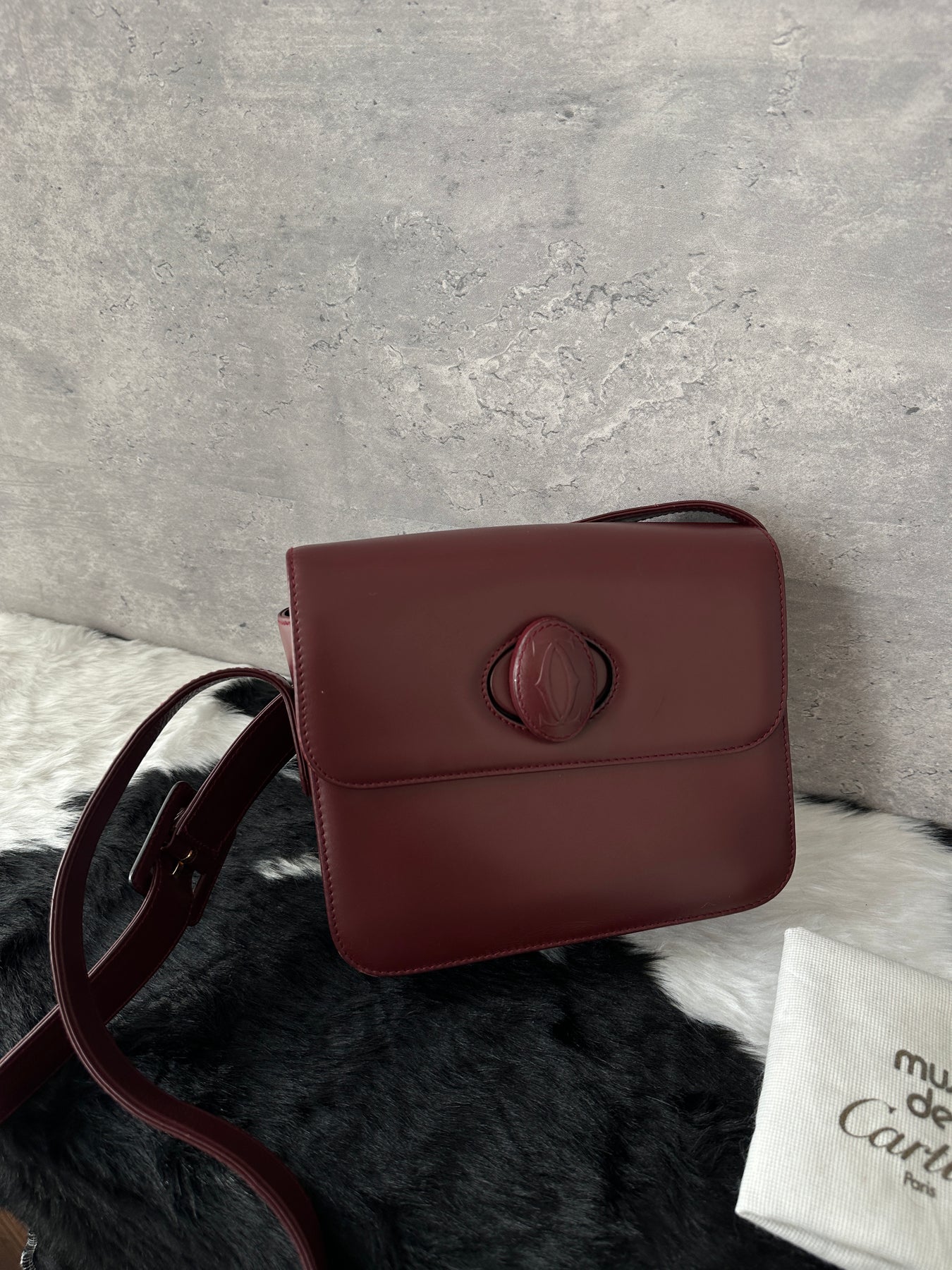 A beautifully preserved Cartier mini turn-lock bag featuring the brand’s iconic egg-shaped clasp in a rare small size. The structured square silhouette paired with smooth leather creates a refined and understated elegance that never goes out of style.