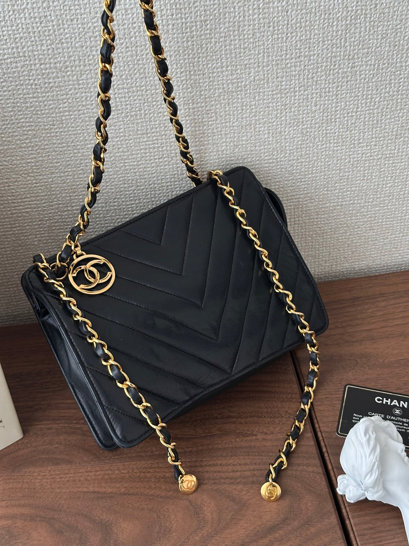 Chanel Round CC Charm V-Stitch Shoulder Bag 🖤✨ with Card & Sticker