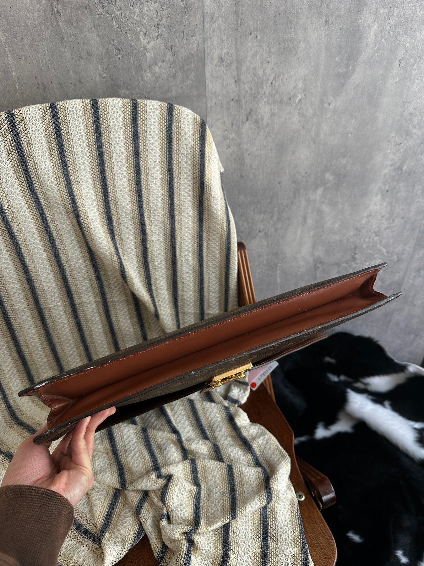 A classic Louis Vuitton monogram envelope-style bag in a generous large size, designed for both elegance and practicality.