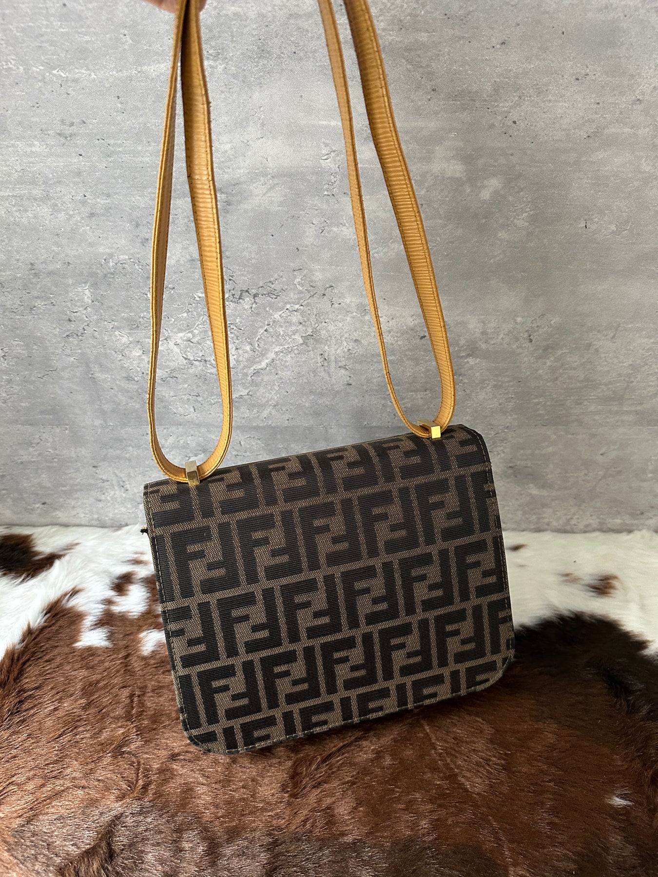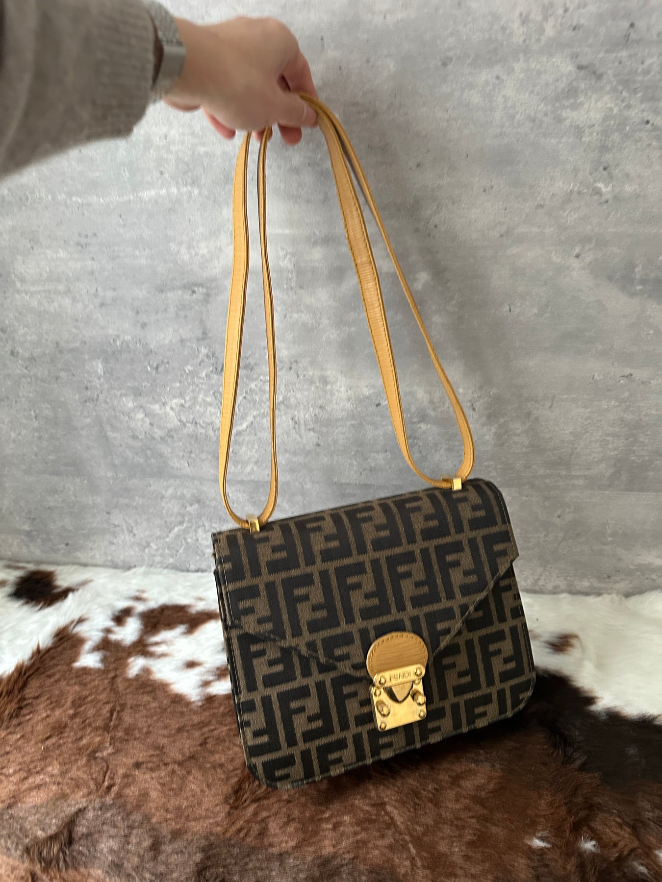 FENDI 🤎 FF Monogram Constance-Style Shoulder Bag|Rare Vintage Find × Chic Structured Shape × Iconic Gold Hardware