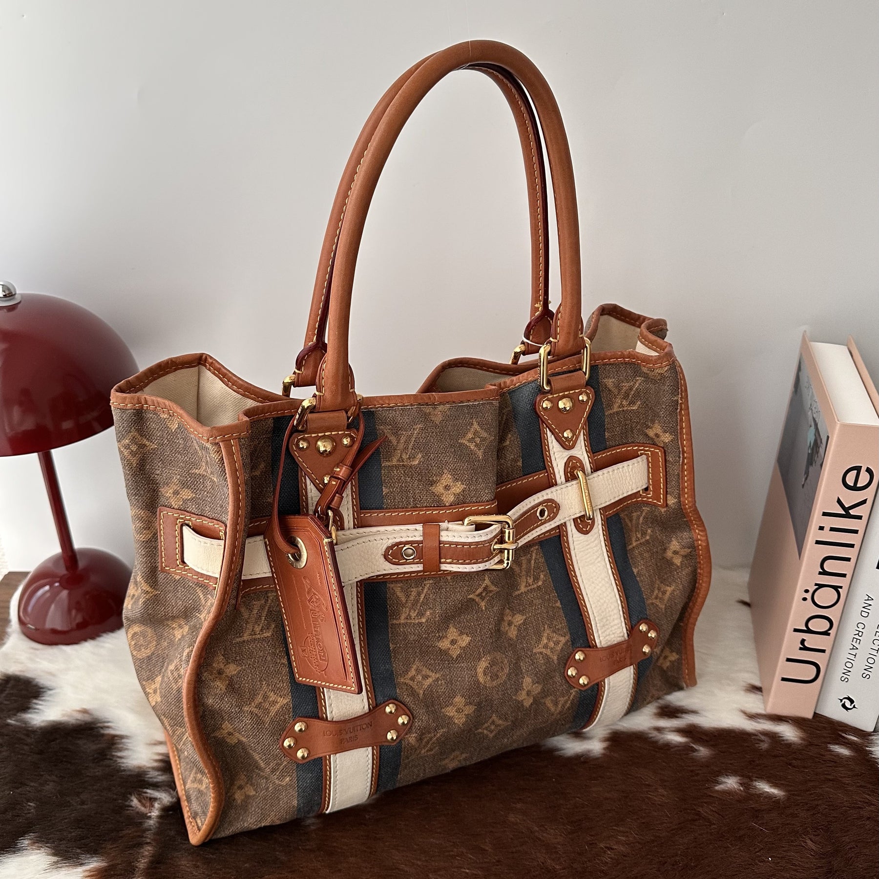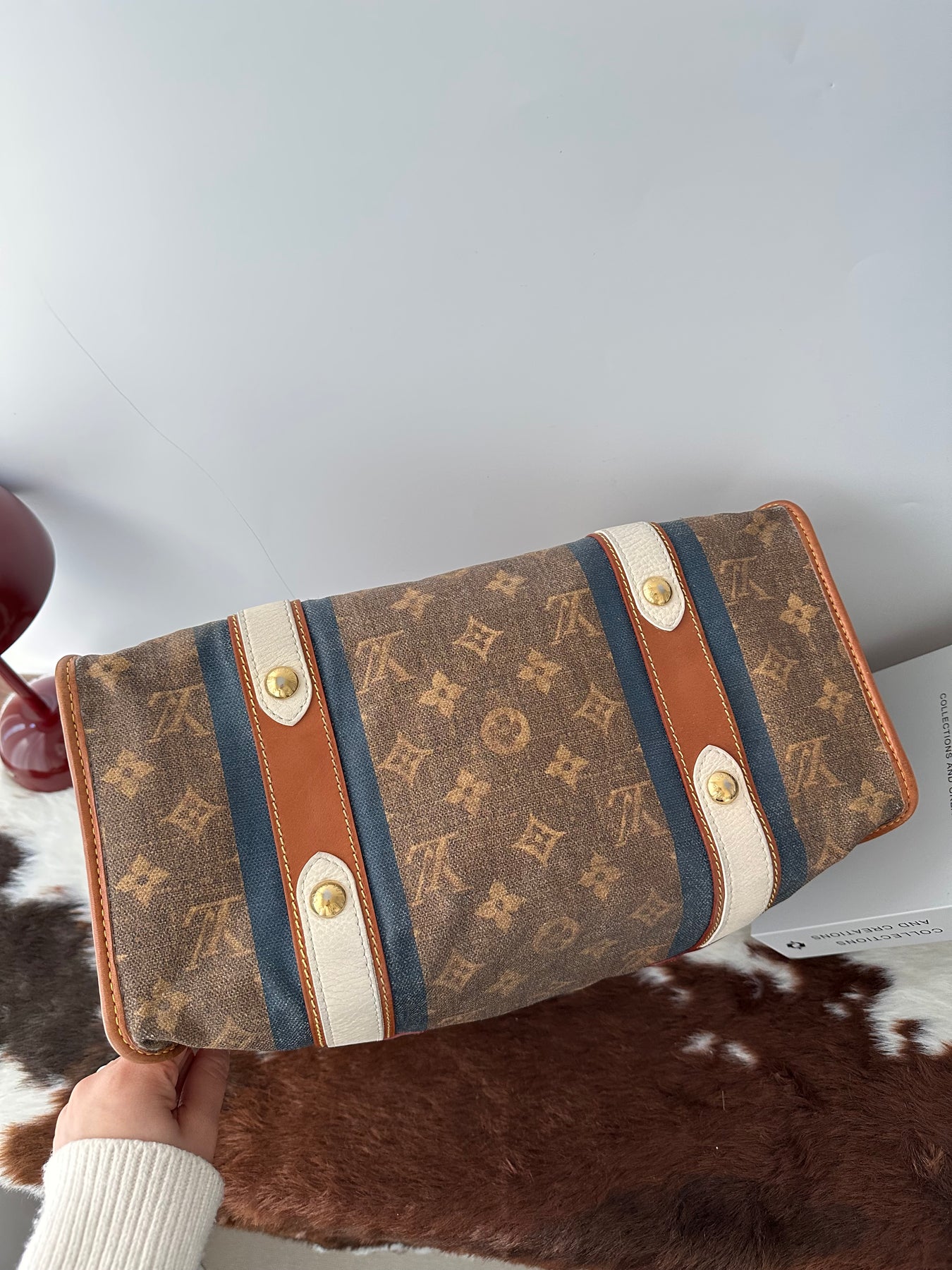 An exceptionally rare vintage Louis Vuitton limited-edition tote, often referred to as the LV “Birkin” for its iconic belted silhouette.