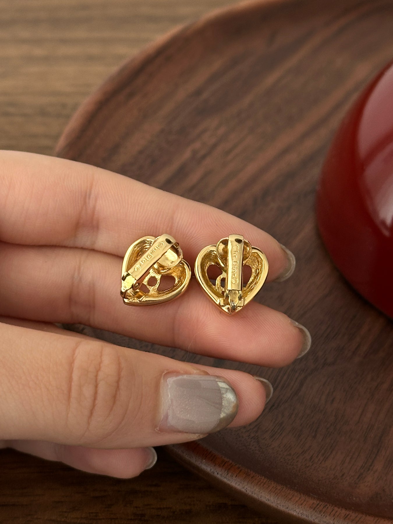 DIOR Heart-Shaped Crystal Clip-On Earrings – Gold Tone × Sparkly × Feminine Chic✨