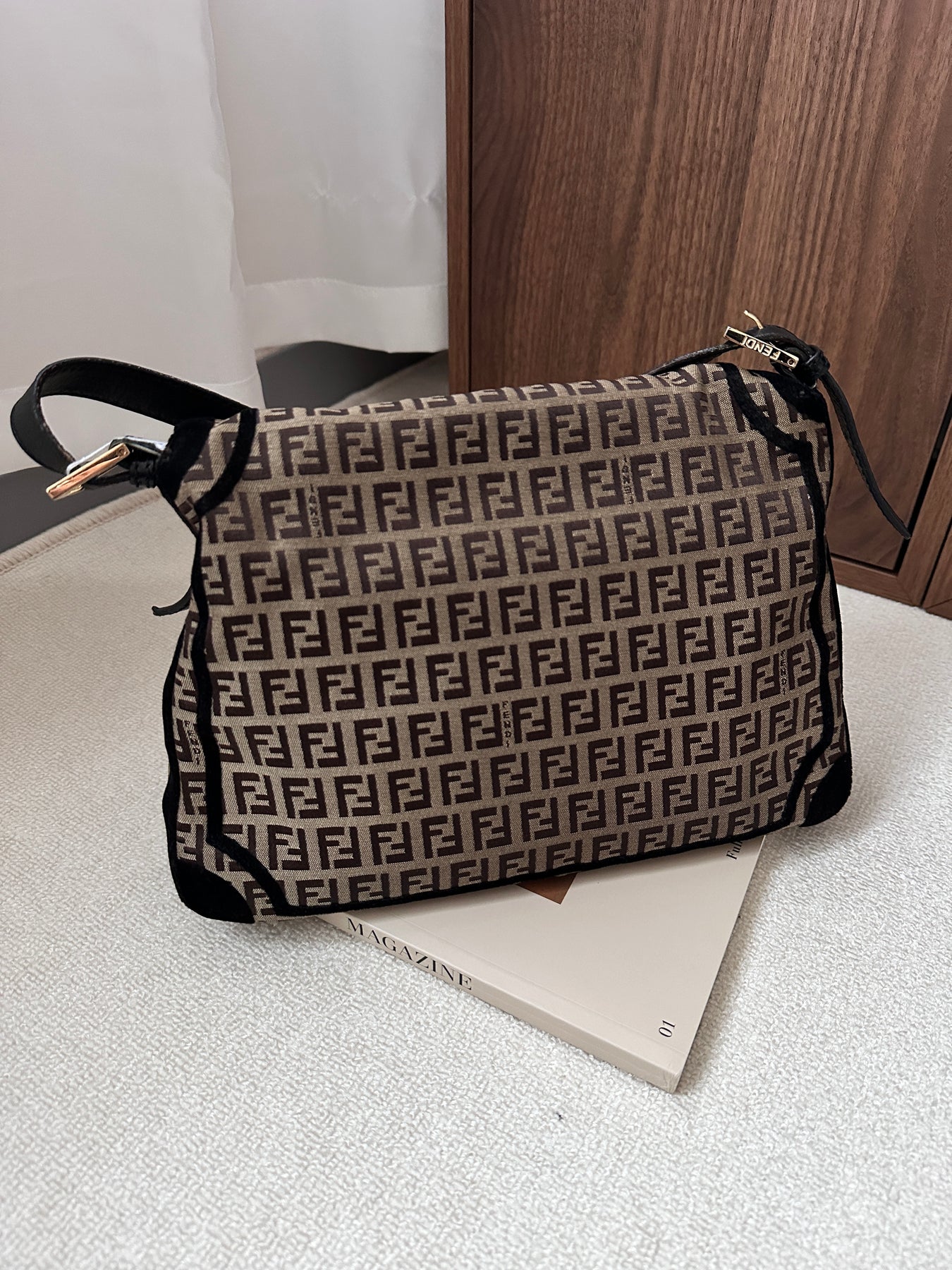 超美又超罕有的 Fendi Mamaa 包,經典 FF 老花搭配天鵝絨拼邊,手感柔軟細膩。金釦設計更讓這款包增添收藏價值,絕對是必收之選。