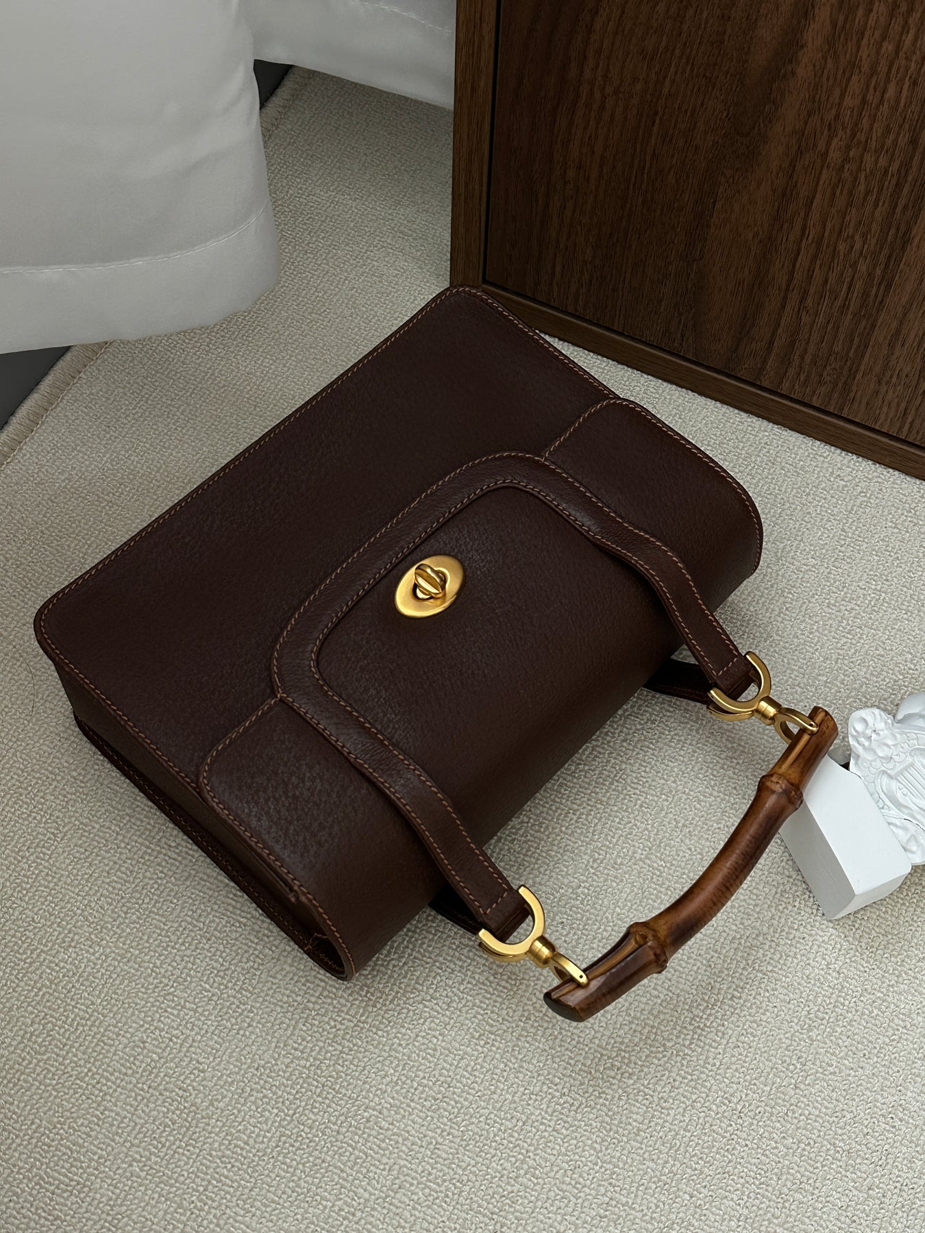 GUCCI Bamboo Double Handle Doctor Bag – Vintage Chocolate Brown 🍫✨