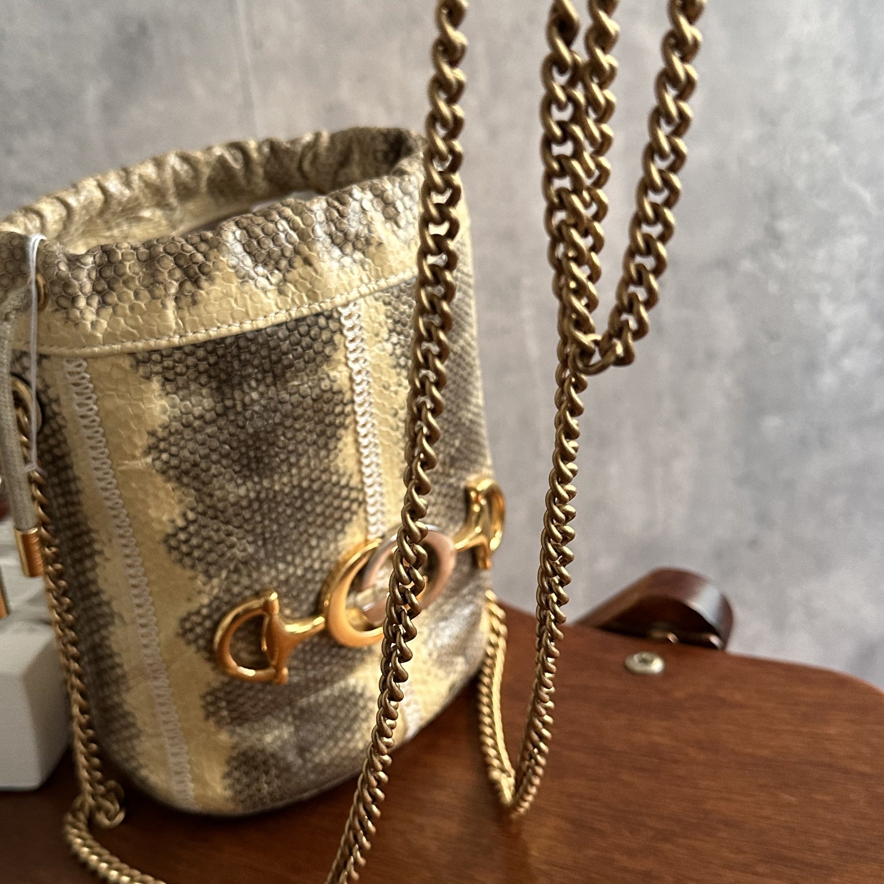 An extraordinary Gucci Zumi mini bucket bag crafted from rare Himalayan-toned python leather, released as a limited edition.