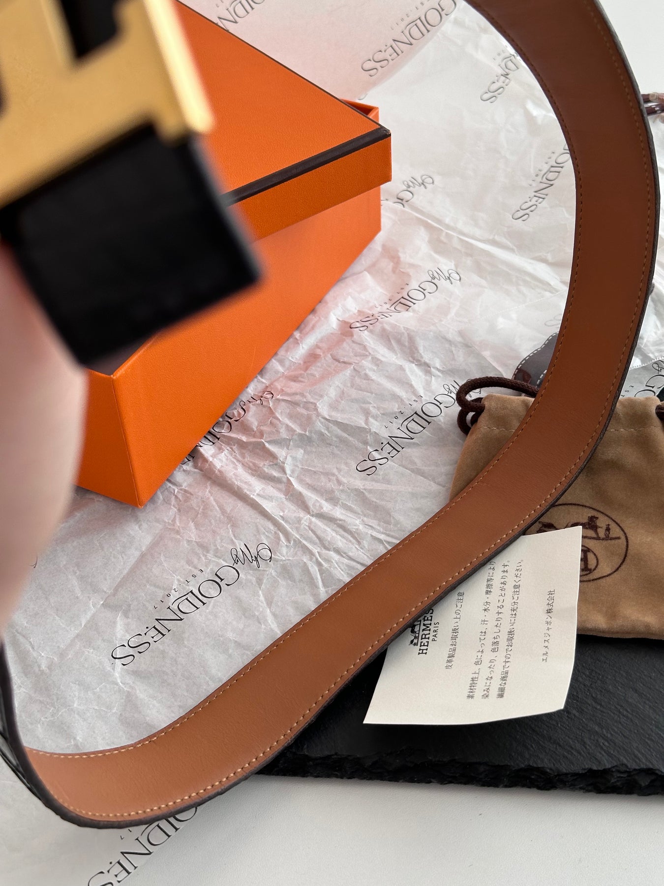 Hermès 愛馬仕|金扣鱷魚皮 Constance “H” 腰帶 🖤💛 全套盒裝|80cm 收藏級經典