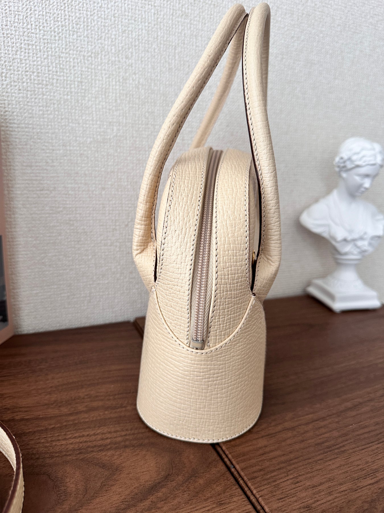 A stunning Loewe vintage shell bag in a dreamy milky cream color — a shade many customers have been asking for, finally back in stock! The structured dome silhouette is chic and practical, while the fine grained leather adds timeless elegance.