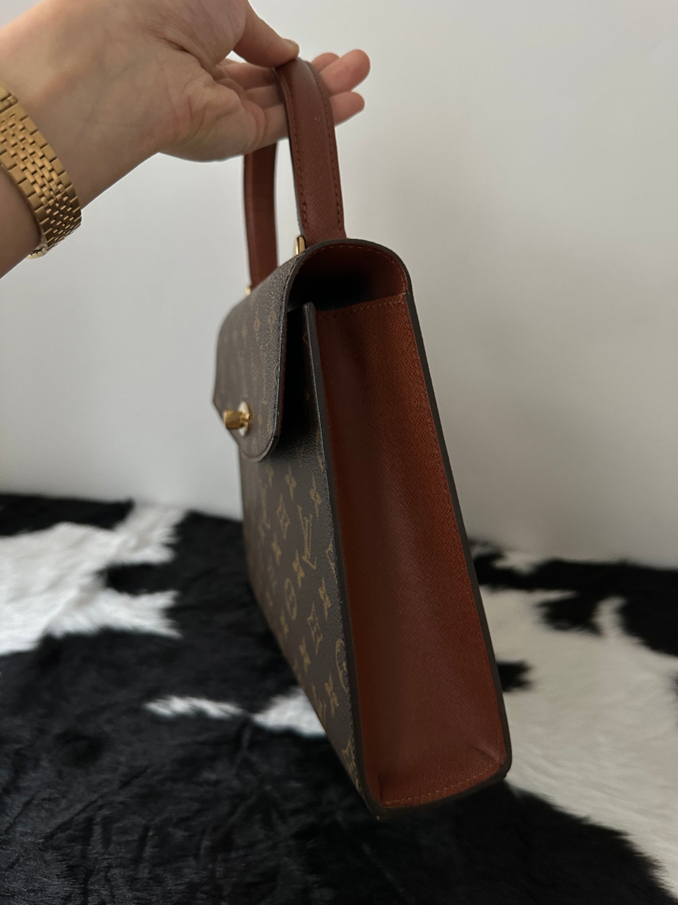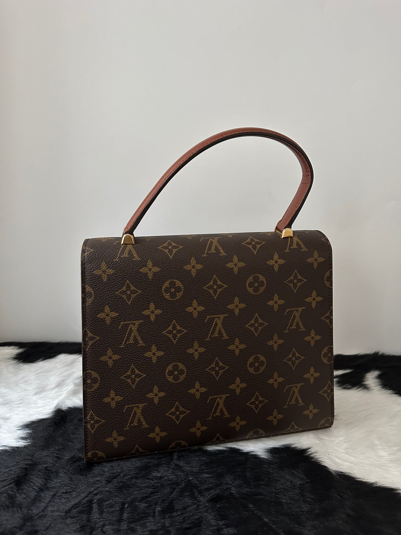 A truly classic Louis Vuitton Monogram Kelly-style bag featuring the elegant turn lock closure that instantly elevates the whole silhouette. The structured shape feels refined and graceful, giving effortless polish the moment you carry it.