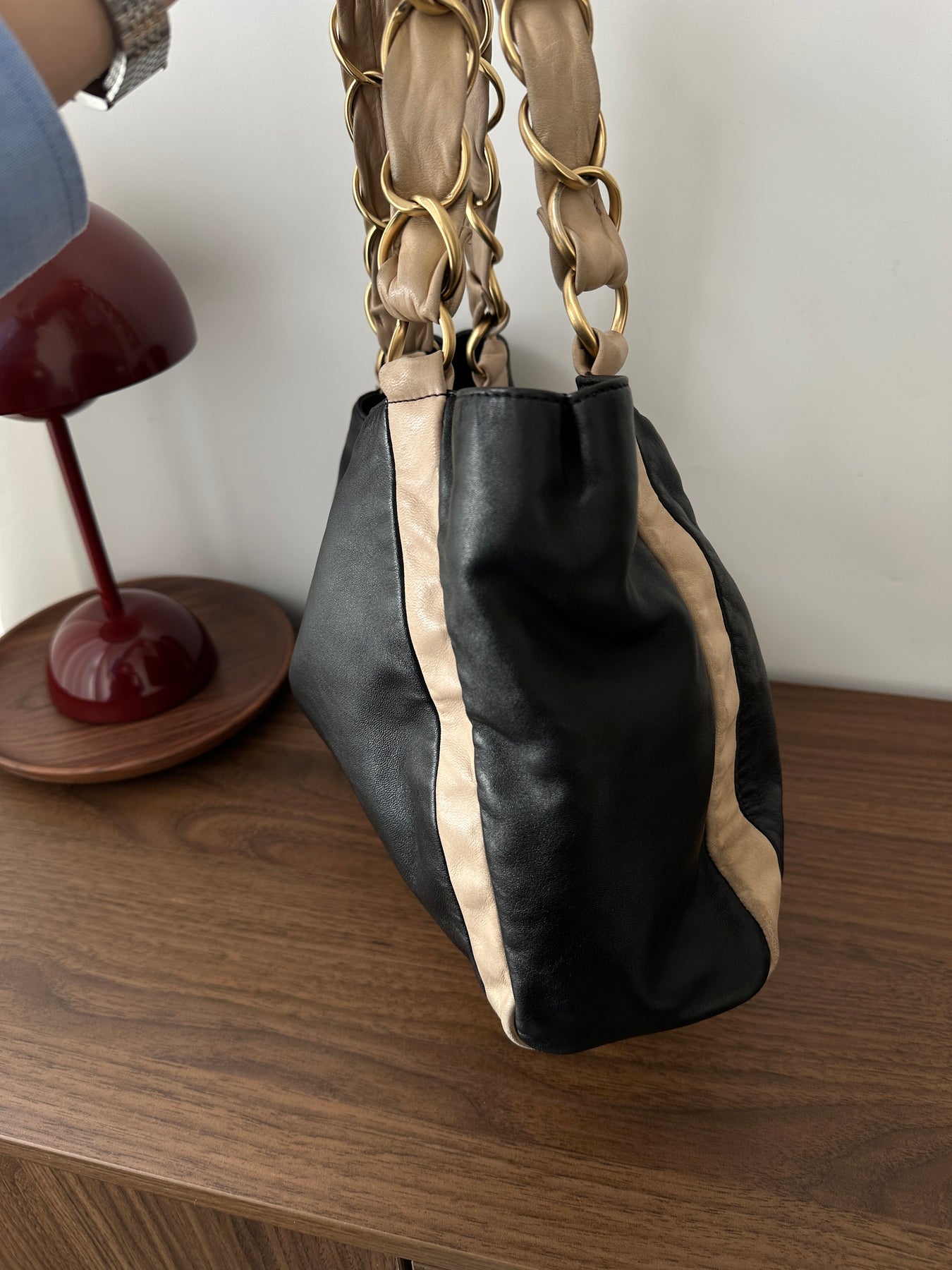 Chanel 撞色鏈條Hobo 🖤🤍|柔軟羊皮・慵懶中見高貴