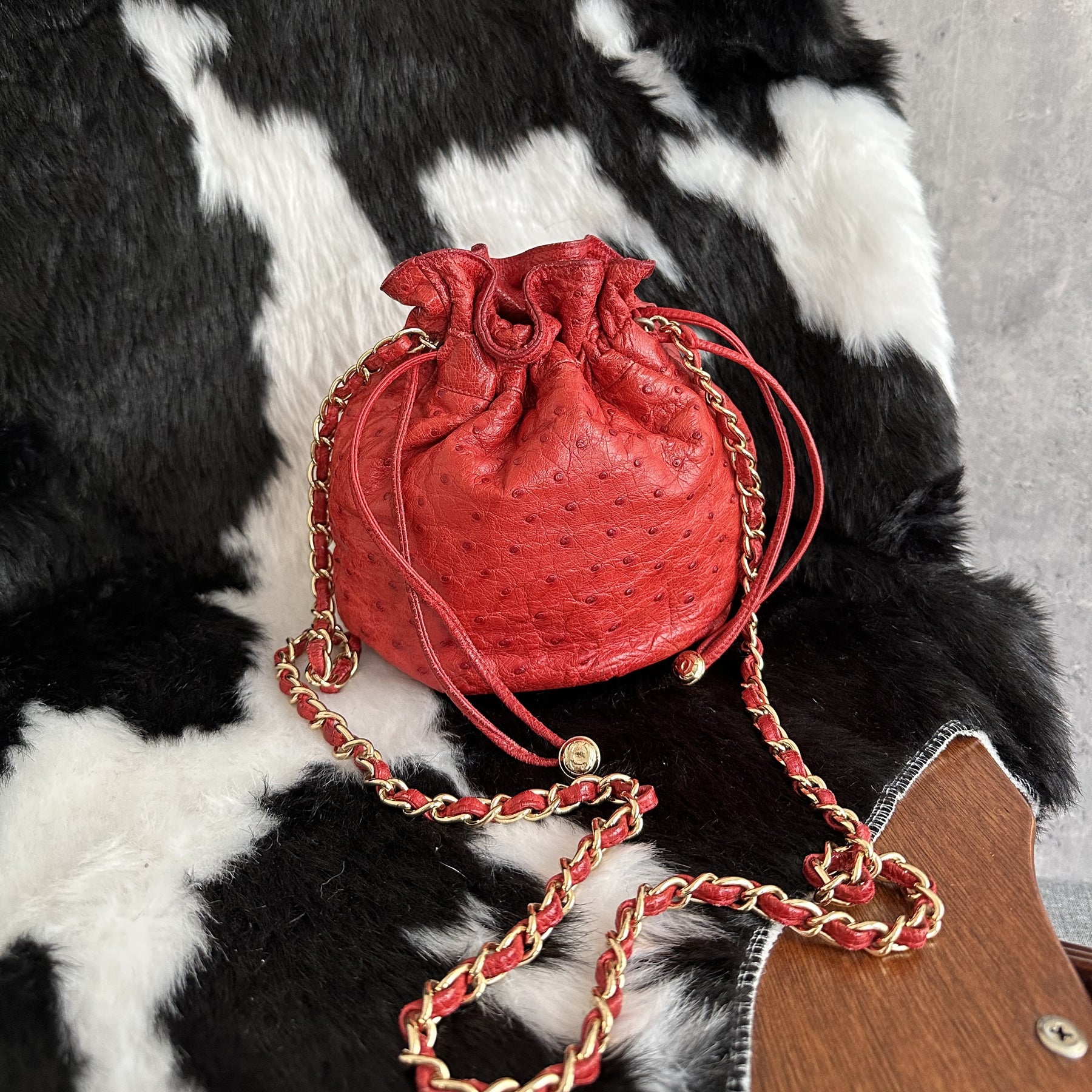 Chanel Ostrich Leather Mini Drawstring “Siu Mai” Bag ❤️✨