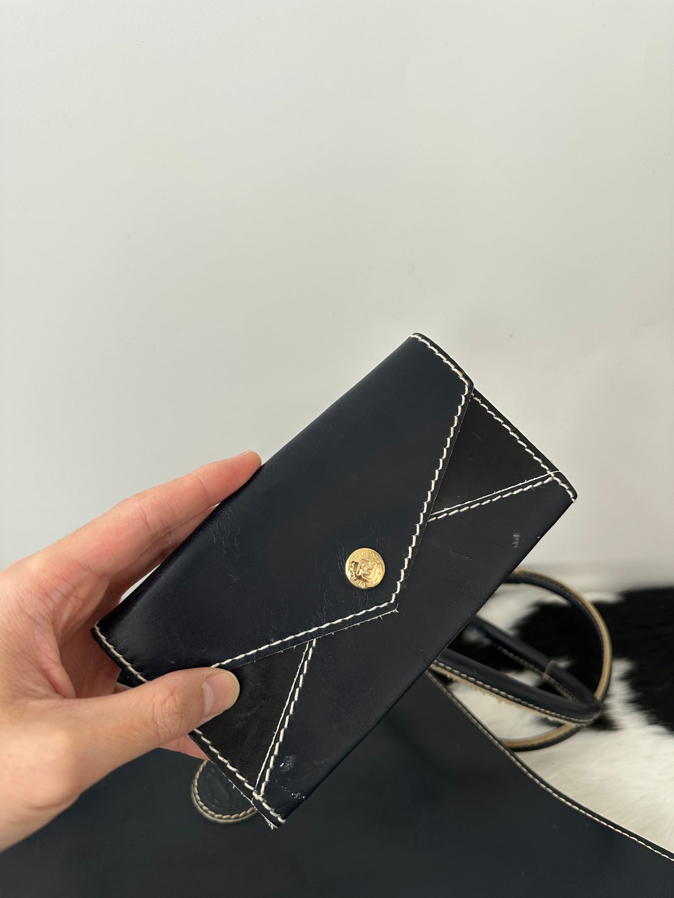 The contrast stitching and subtle Fendi logo detail give it that quiet-luxury vintage charm, while the included pouch adds extra functionality for cards or small essentials.