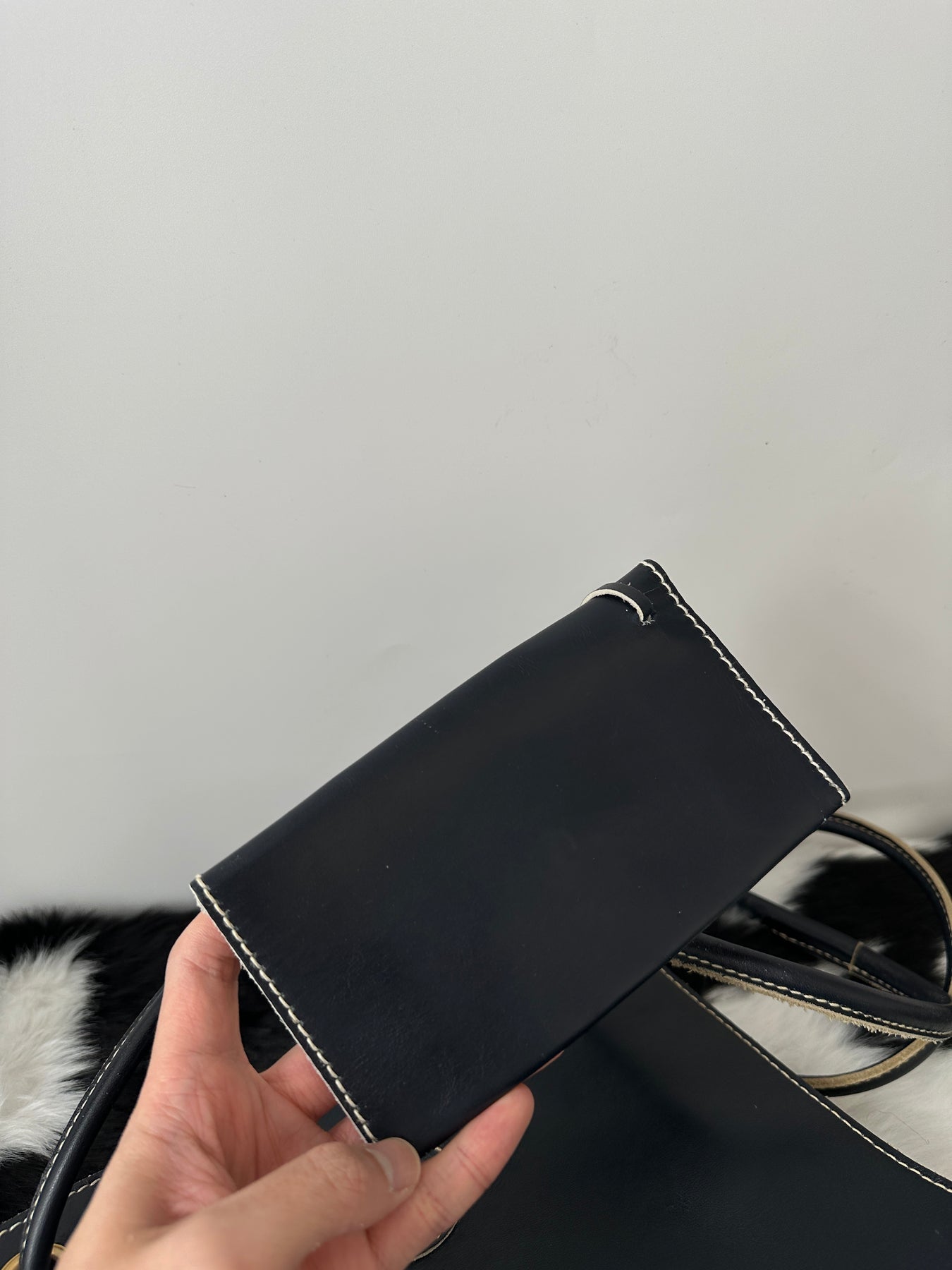 ・Black leather with contrast stitching for a vintage luxe look