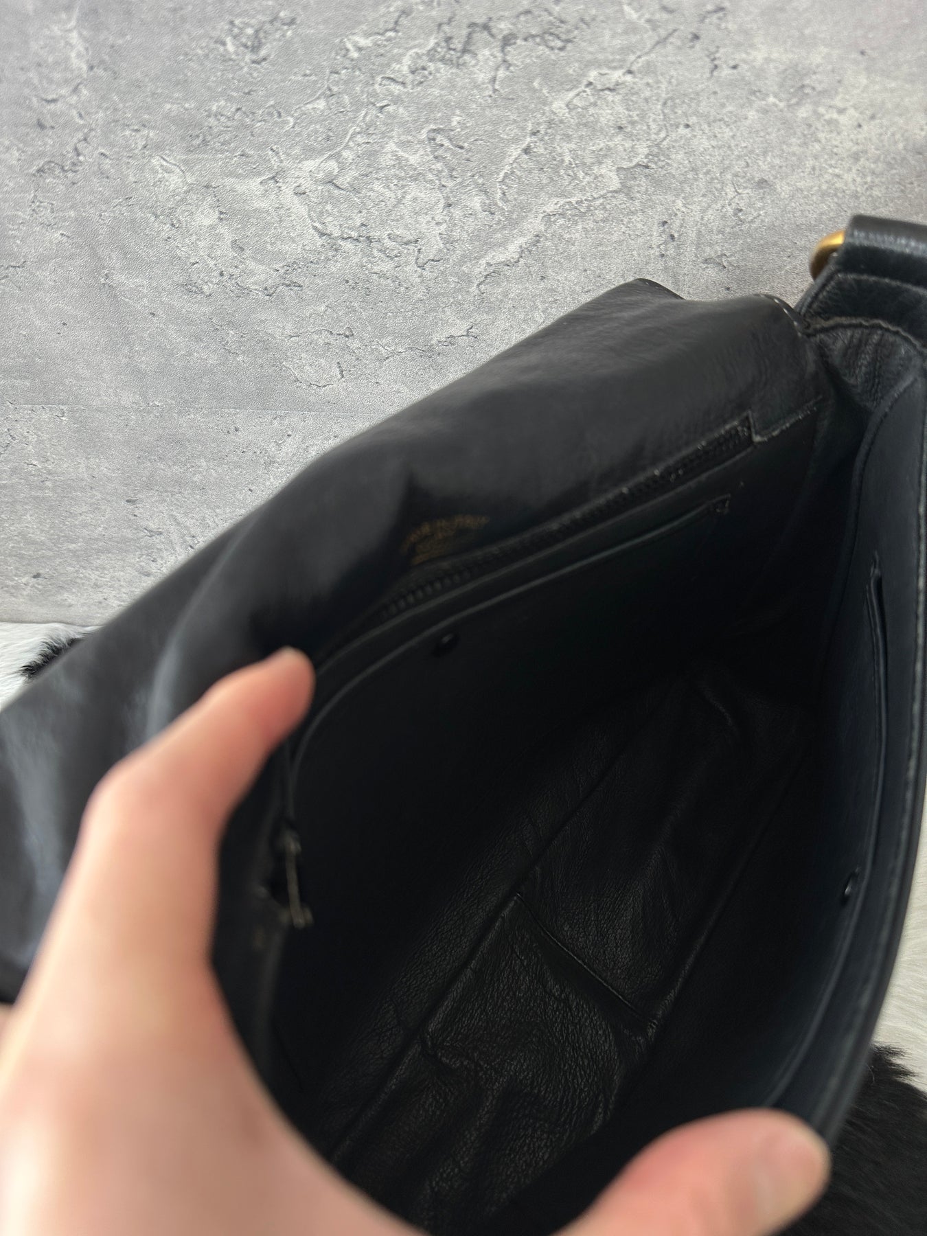 A beautifully preserved vintage Gucci shoulder bag featuring the brand’s iconic oversized Horsebit hardware. Crafted in smooth black leather, the bag develops a richer patina over time, enhancing its character with every wear.