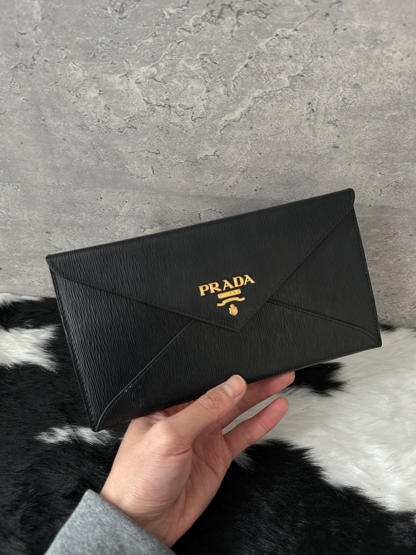 PRADA Envelope Long Wallet 🖤✨|Gold Logo, Saffiano Leather, Timeless Design