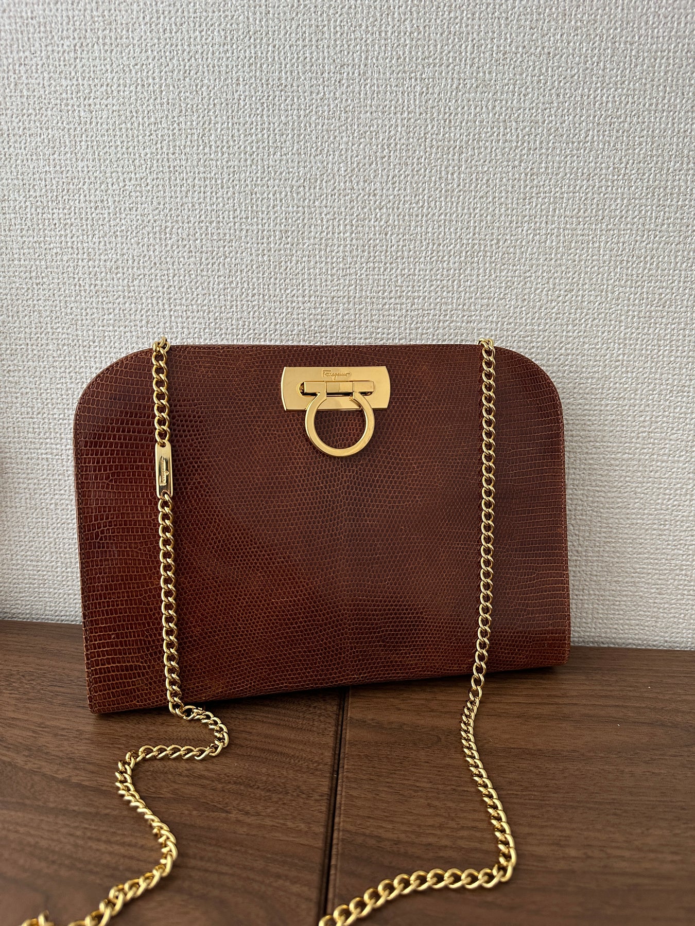 Salvatore Ferragamo Lizard Leather Chain Shoulder Bag 🤎✨ Excellent Condition | Timeless Elegance