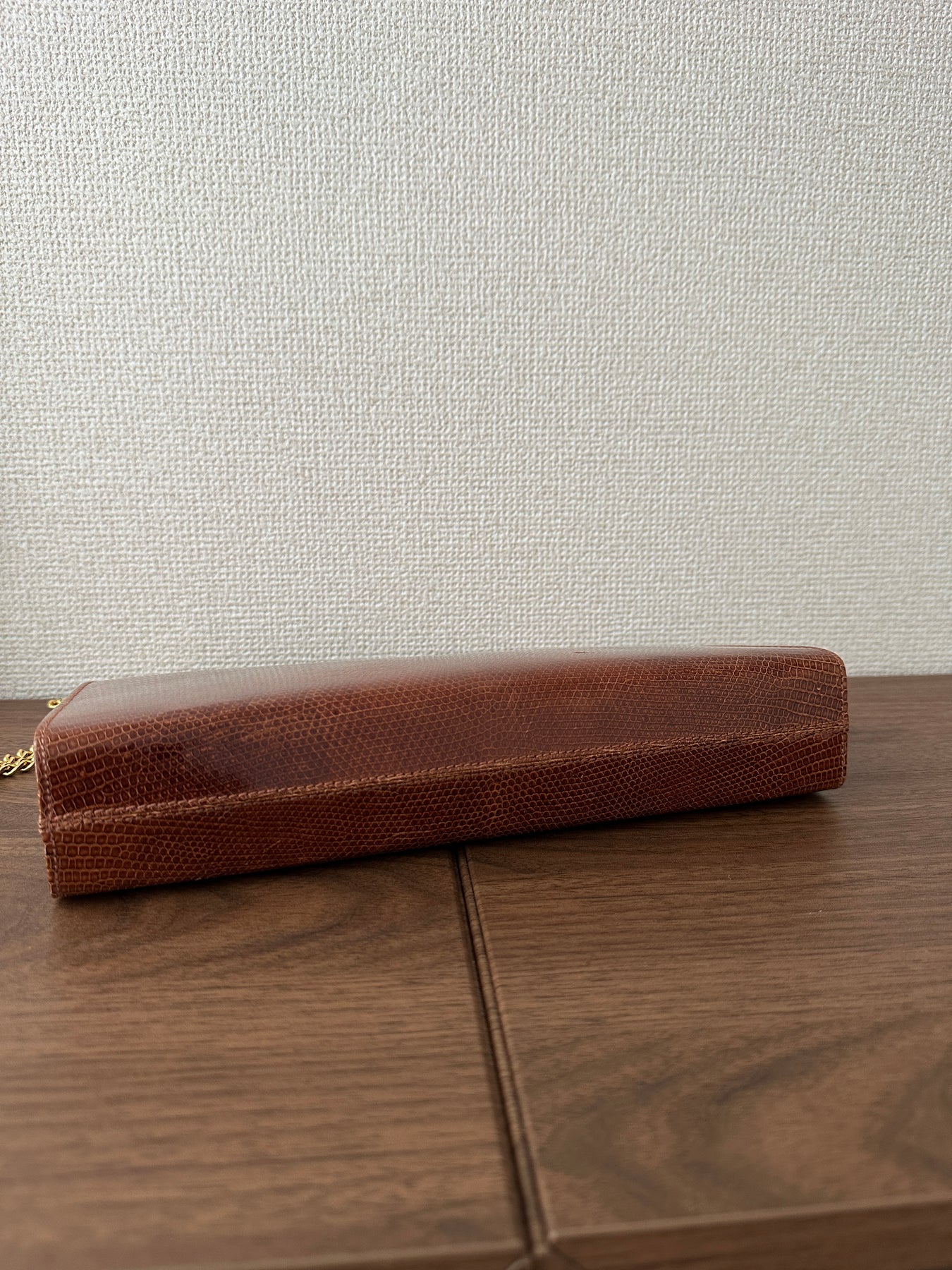 A truly refined piece from Ferragamo, crafted from genuine lizard leather with an irresistible natural sheen 🦎✨ The rich chocolate brown tone pairs beautifully with gold-tone hardware and chain, creating a perfect balance of luxury and sophistication.