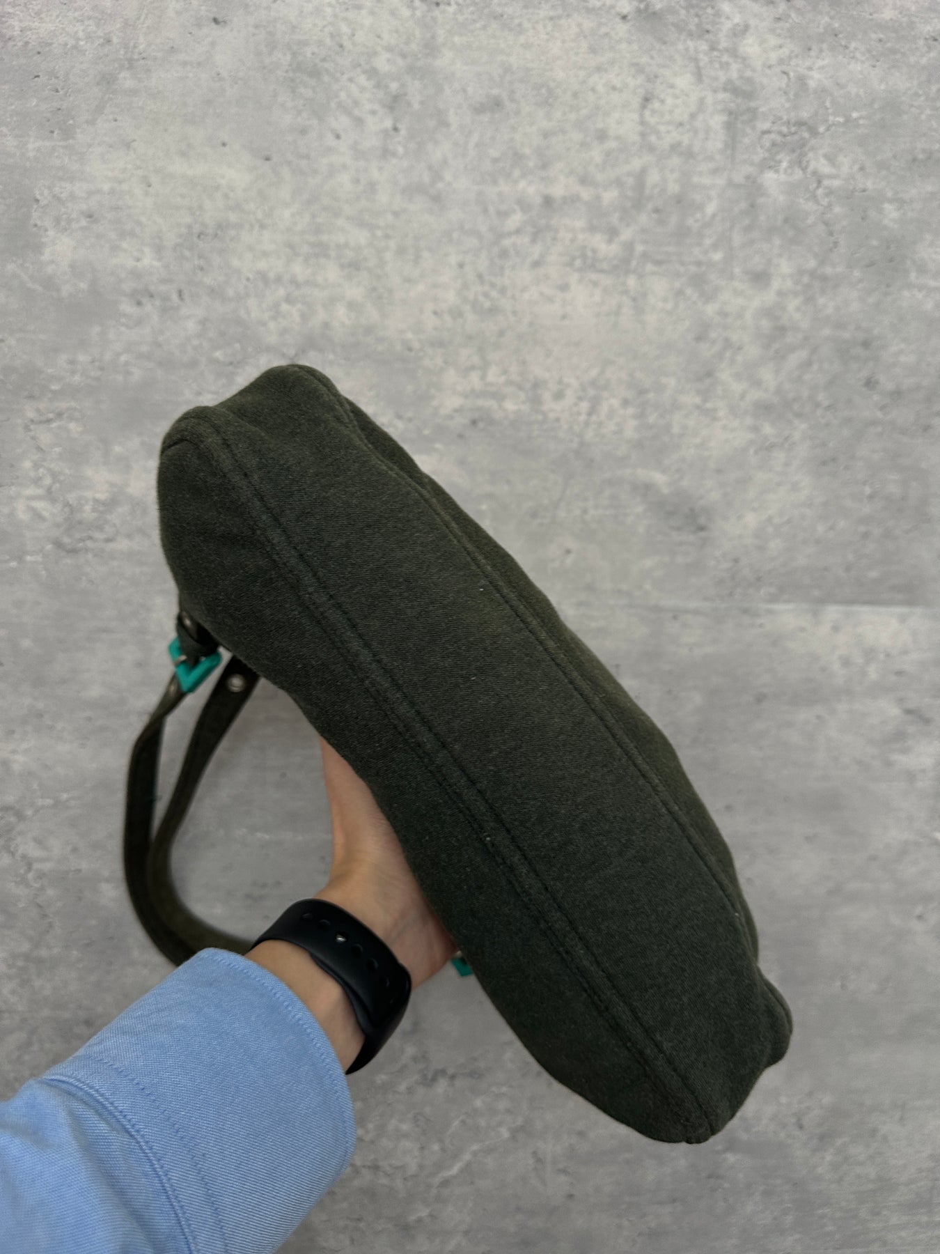 An irresistibly cute vintage Fendi find — this soft wool hobo bag combines cozy texture with chic Italian design. The highlight? Its Tiffany blue buckle and hardware, adding a fresh, playful pop to the elegant dark green tone.