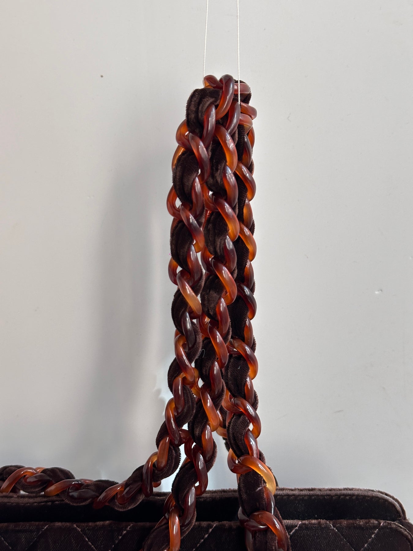“A rare vintage Chanel with that plush velvet and tortoiseshell chain combo — it’s giving old-money elegance with a soft, romantic twist.”