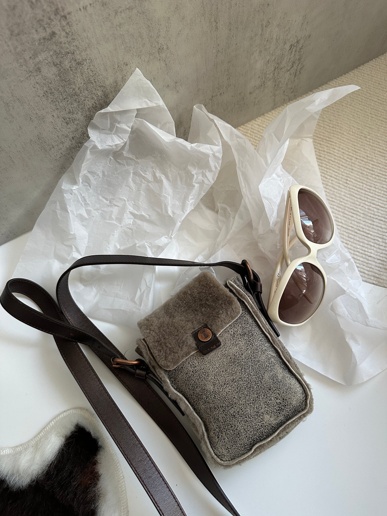 Celine Mini Shearling Triomphe Bag 🩶✨ | Cozy Luxury in the Cutest Form